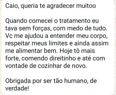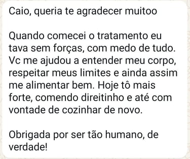 Estou ao seu lado para cuidar da sua saúde durante o tratamento, com orientações nutricionais personalizadas, sempre baseadas nas evidências científicas mais atuais